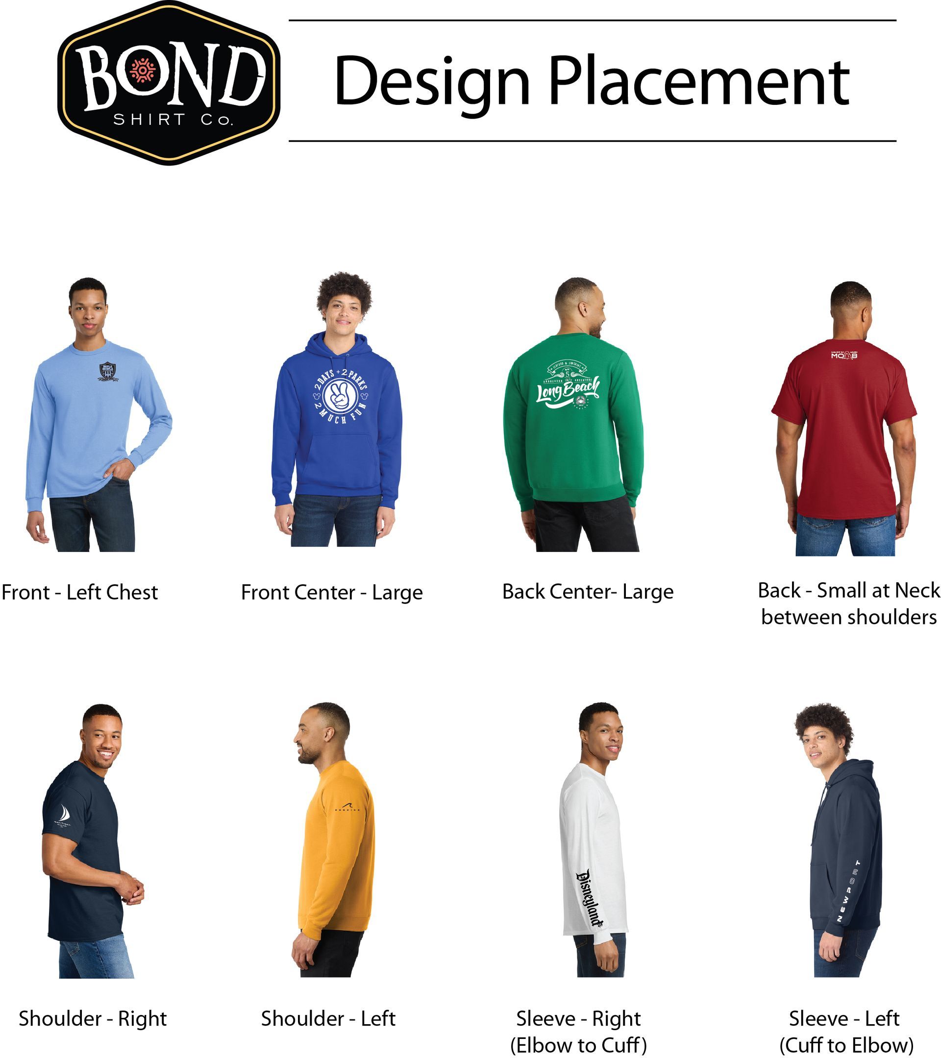 Decide on the perfect spot for your design and be sure to mark your choice on the order form.